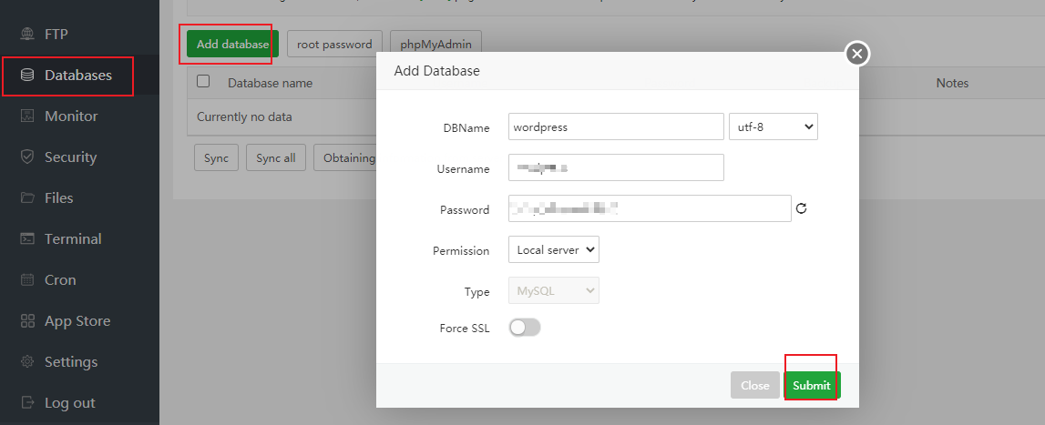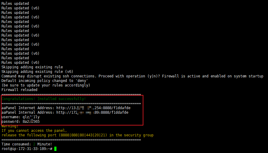 会告诉Pannel的地址和端口,以及可以访问的用户名和密码。确认可用后,请立即修改端口及用户密码!!!非常重要!!!