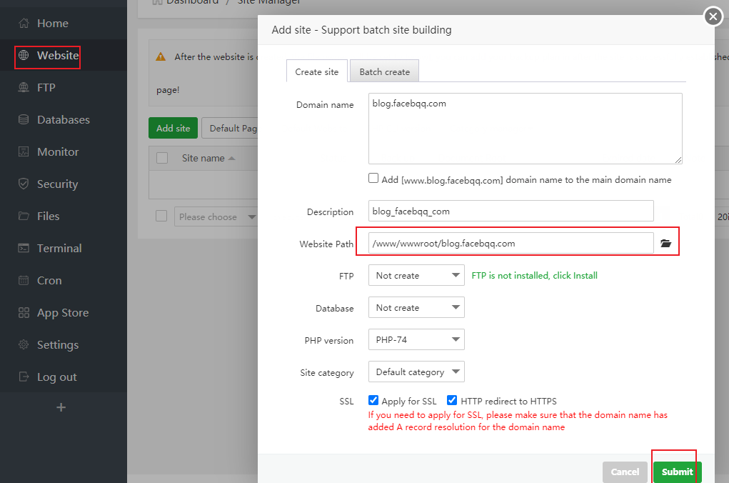 完成后,打开网址的配置,检查一下https是否配置好了,如果没有安装步骤配置即可。