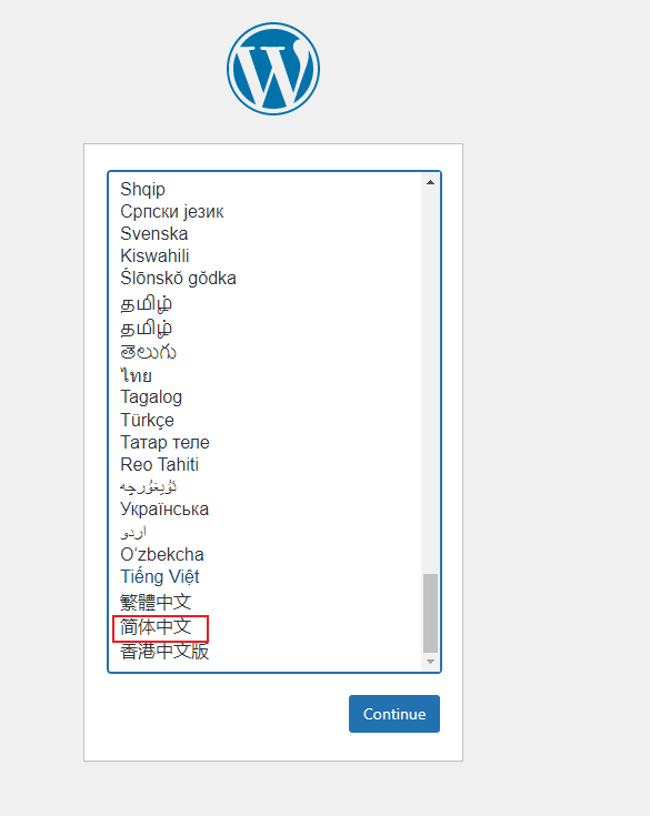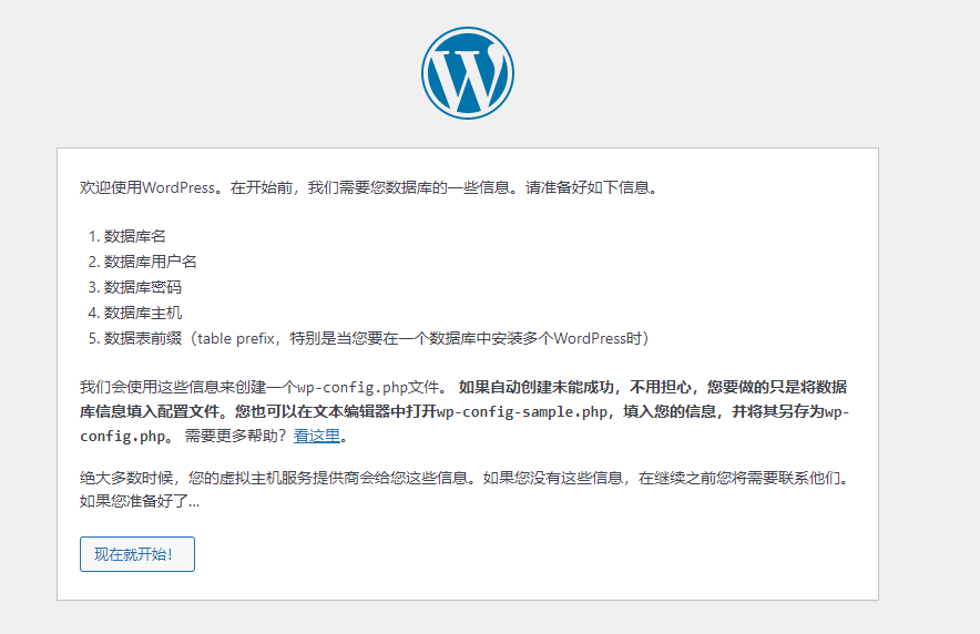 2.直接打开当前的域名,WP会自动跳转到初始化页面,如: