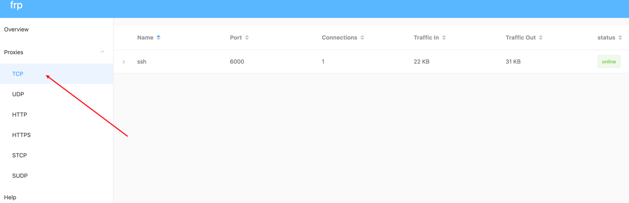 保存然后启动服务./frps -c ./frps.ini,这是前台启动,后台启动命令为nohup ./frps -c ./frps.ini &