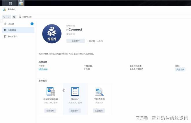▼在群晖的『套件中心』以及爱速特应用中心中同样可以找到『nConnect』的踪迹,基本上主流的NAS系统中nConnect都有上架。