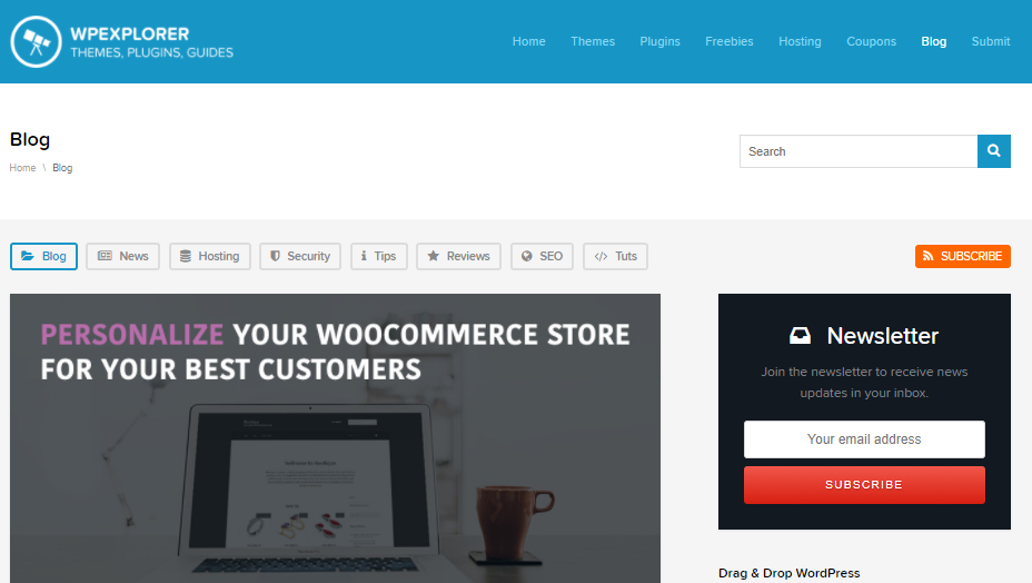 WPExplorer提供WordPress主题和插件,这些主题和插件在WordPress用户中很受欢迎。它有各种主题和插件,从投资组合,摄影,博客,商业到SEO,电子商务和安全。