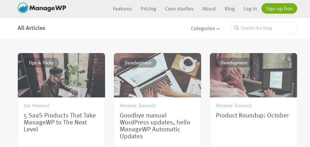 ManageWP博客分享由WordPress专家撰写的教程,指南和其他有用的文章,如Vladimir Prelovac,Charnita Fance和Brenda Barron。