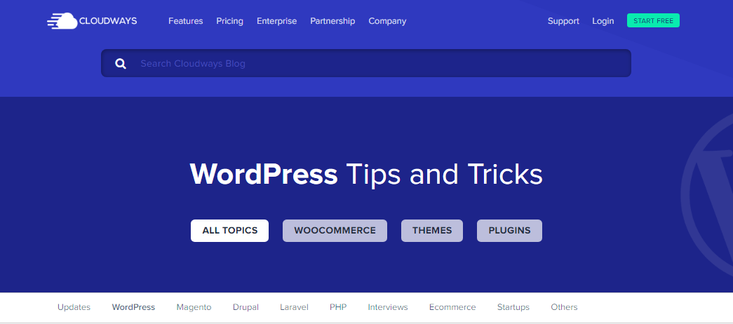 Cloudways是一家信誉良好的云托管服务提供商,提供完全托管的WordPress托管服务。除了常规业务外,它还有一个非常有趣的WordPress博客。