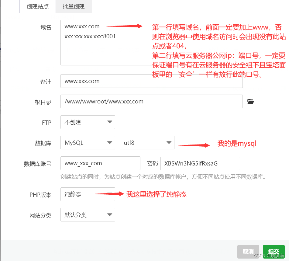6. 站点添加成功后,点击下面方框(注意以下图片是采用我自己.org.cn的域名已创建好的站点讲解的,上面www.xxx.com只是给一个例子,并没有提交,所以后面图片中目录名是.org.cn/)