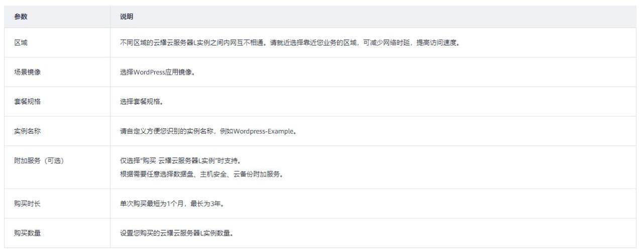 ③ 根据界面提示,设置云耀云服务器L实例参数,选择合适的镜像以便快速搭建环境。