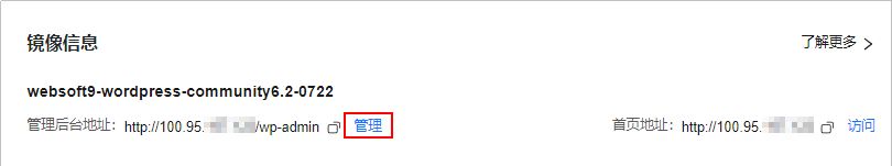 1.在服务器“概览”页“镜像信息”中,单击“管理”登录管理界面。