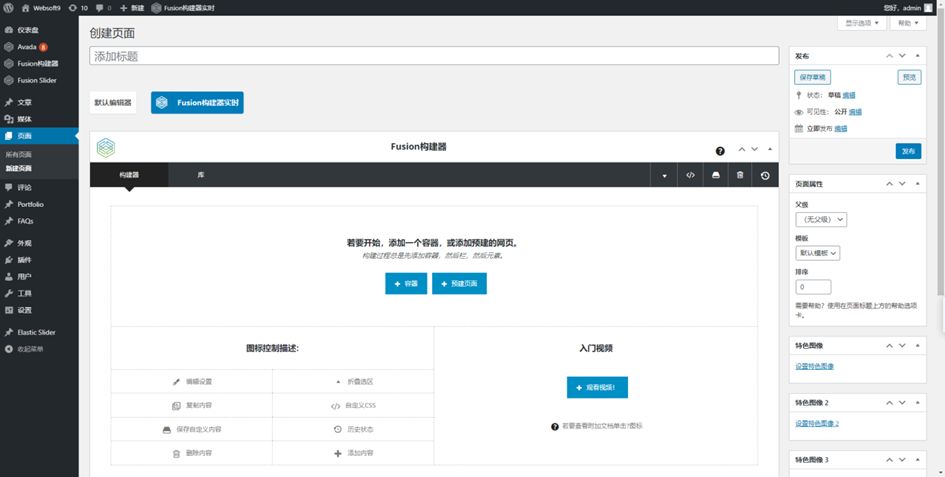 4.启用主题后,选择“页面 > 新建页面”,通过主题自带的Fusion构建器可灵活构建网页。