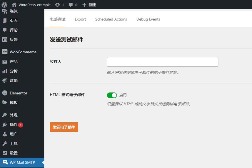SMTP配置成功后,WordPress网站后台就会使用example@163.com邮箱地址发送邮件。