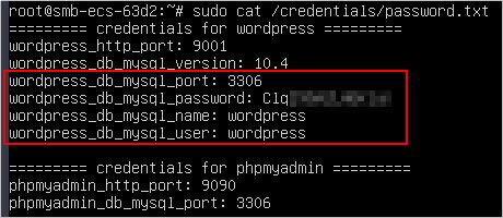 1.远程连接云服务器,运行sudo cat /credentials/password.txt命令,获取phpMyAdmin的登录密码。