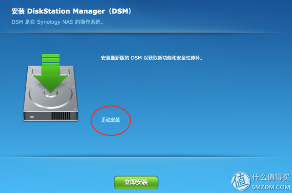 选择上图红圈中的手动安装,根据提示去群晖官网下载群晖的操作系统——DSM。然后继续截图做gif