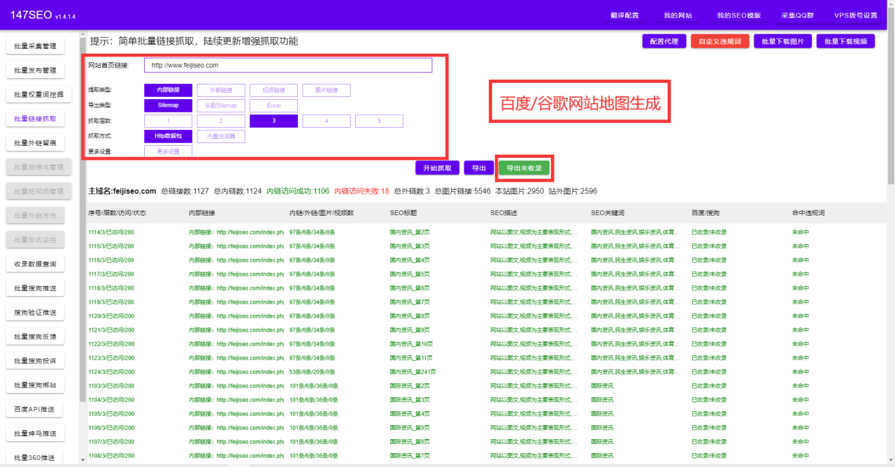首先是使用Sitemap这个功能,搜索引擎会给你的网站收录并建立索引,只有 搜索引擎建立了索引,你的网站才能在搜索引擎上出现,才能具备参与排名的资格。所以这个功能在大家在网站上线后,就要尽快使用和操作,让 搜索引擎以最快的速度发现你网站的存在,收录并索引,具体不懂的同学,可以通过以下软件快速生成Sitemap并且提交给搜索引擎。