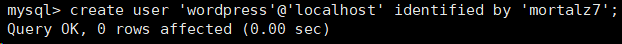 create user 'wordpress'@'localhost' identified by 'mortalz7';