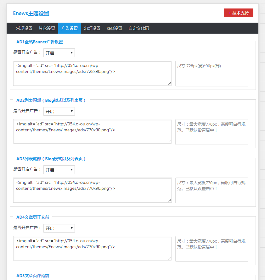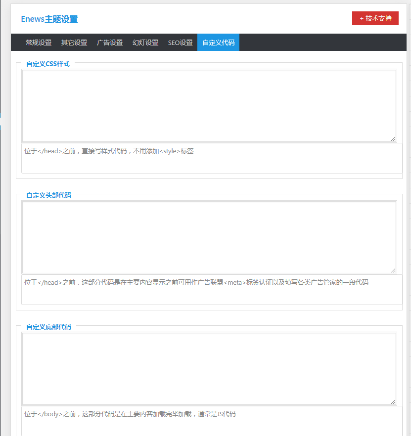 其他:搜索引擎优化关键词,搜索引擎优化描述,自定义CSS样式,自定义标题代码,自定义底部代码,和统计代码