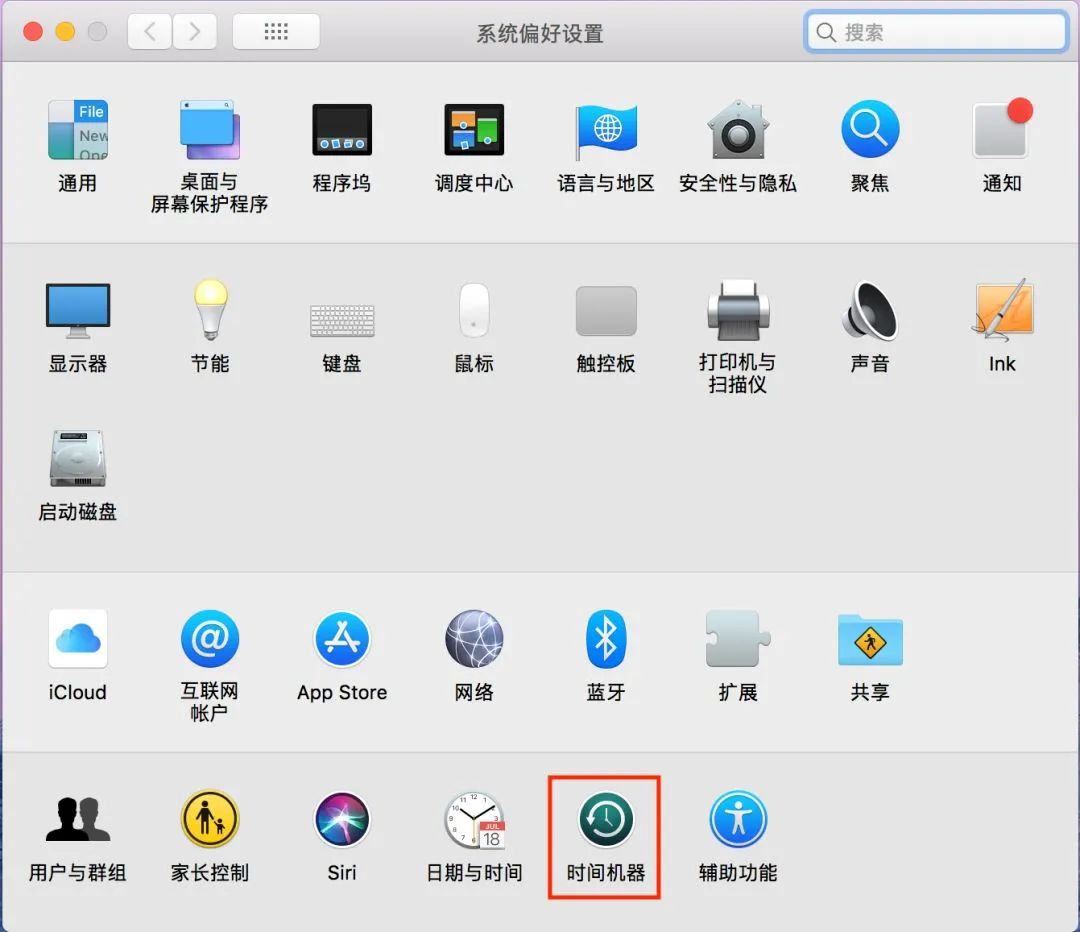 打开【系统偏好设置】>【时间机器】(就是Time Machine)