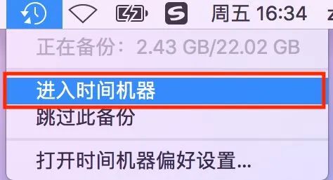 如果想要恢复特定的历史文件,可以点击菜单栏,点击【进入时间机器】