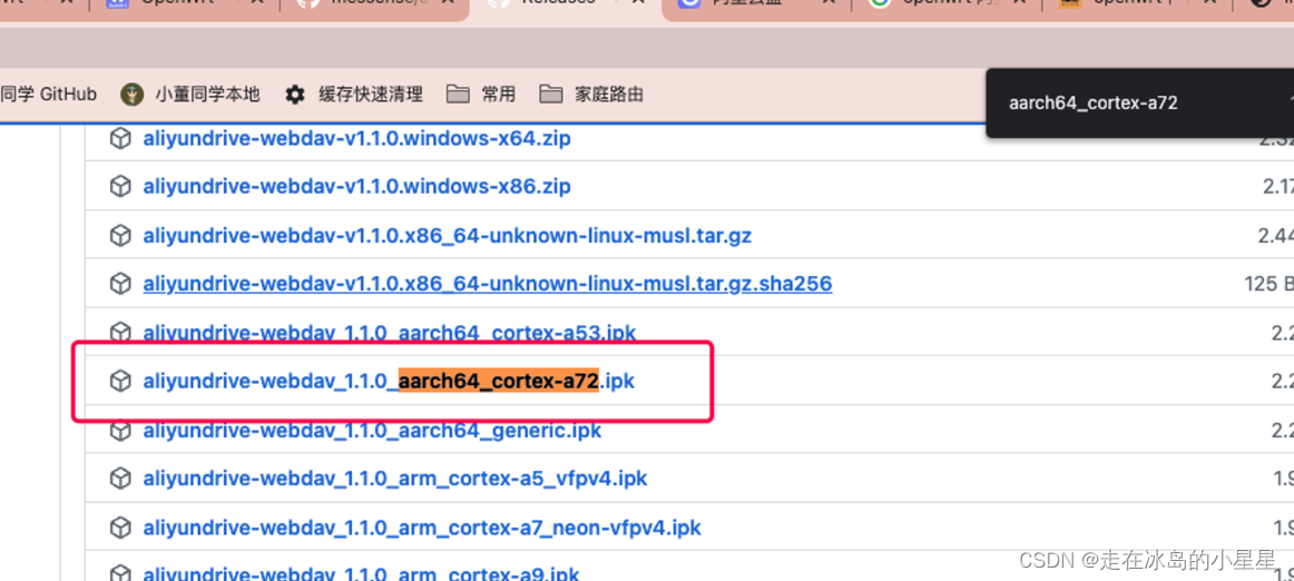 在这个页面下载适合自己路由器的版本的文件https://github.com/messense/aliyundrive-webdav/releases ,使用 opkg print-architecture 这个代码来查看自己路由器的架构信息。比如我的就是 aarch64_cortex-a72
