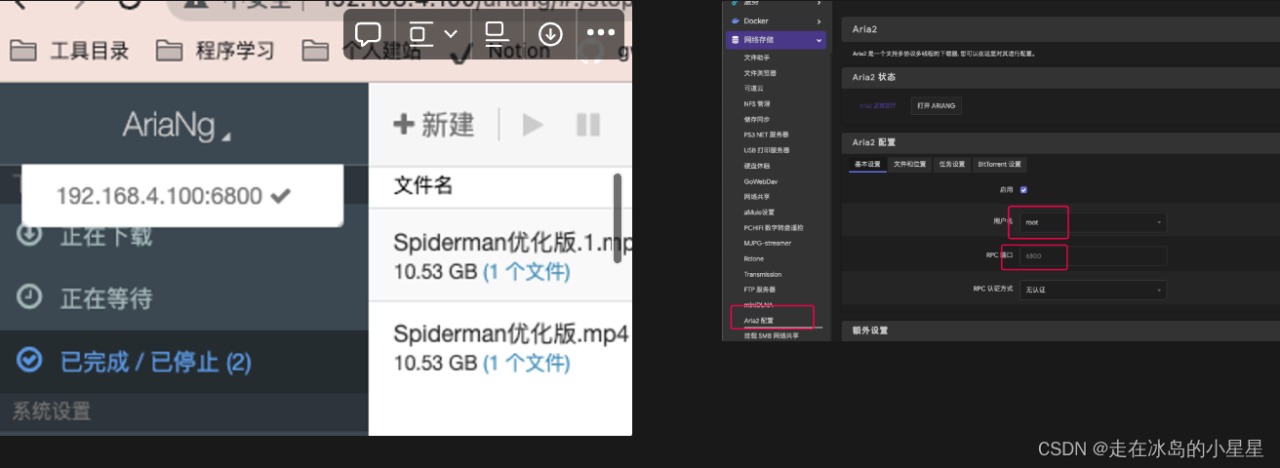 这里的文件下载采用的是离线下载也就是并不占用我的电脑的硬盘。采用 AriaNg 下载。服务端配置如下