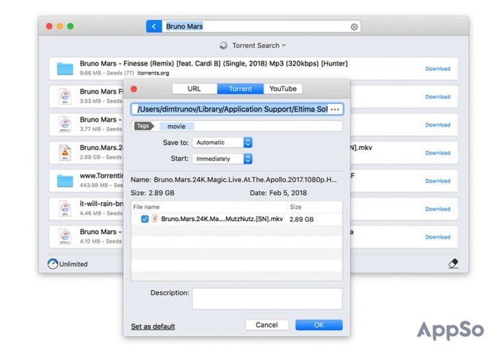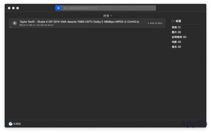 当然,除了颜值高之外,功能也是很强大。如果你具备科学上网环境,甚至可以直接在 Folx 5 中下载 YouTube 视频。除此之外,在 Pro 版本中还支持在 Folx 中搜索种子并直接下载的功能,非常方便。