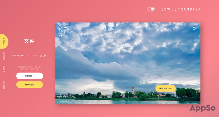 《奶牛快传》是一个纯粹的文件传输工具,无需注册,只需上传文件并生成分享链接,就可以把文件分享给你的好友。免费最大可传输 2GB 文件,最多储存 168 小时(即 7 天),不限速。