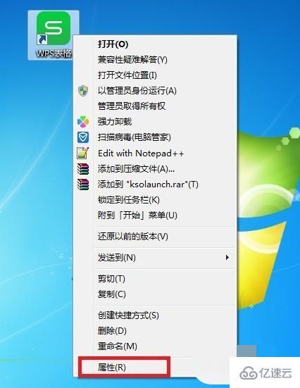 首先,找到桌面上的【WPS文字】或者【WPS表格】,然后鼠标右键,选择并点击【属性】
