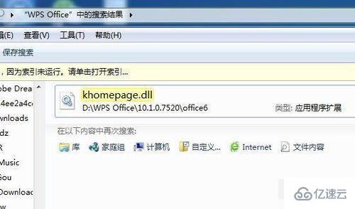 这时,我们就会看到搜索出了一个名为【khomepage.dll】的文件。