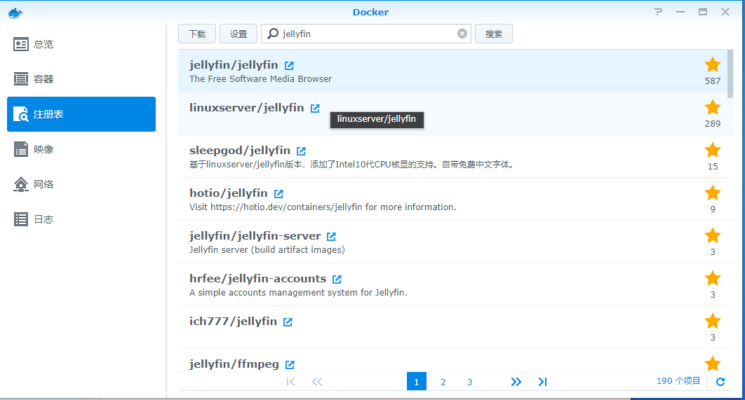 上述命令可以在官网自行查找https://registry.hub.docker.com/r/jellyfin/jellyfin/tags