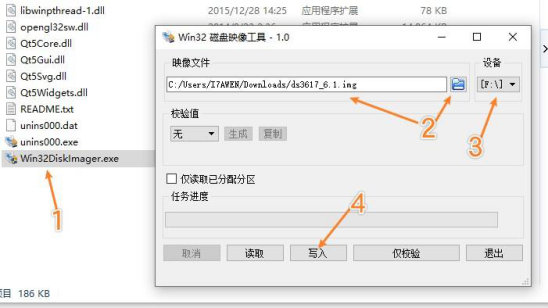 记住,引导文件是img结尾的,然后设备选择到F盘,点击写入: