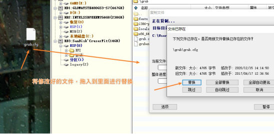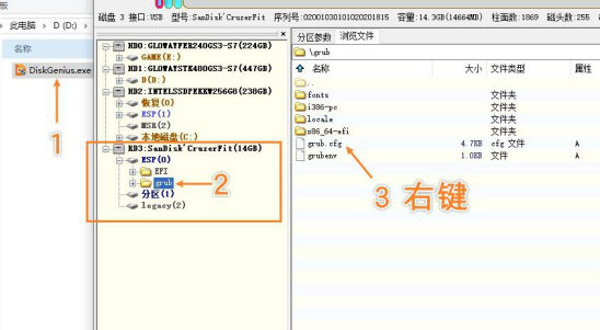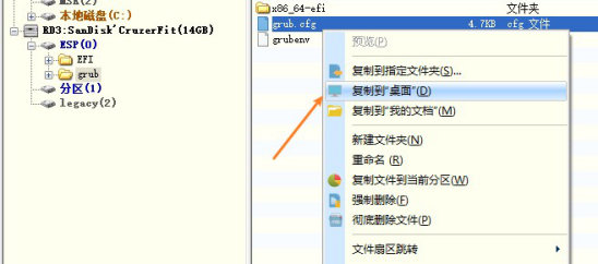 我们找到ESP-grub 这个选项,在右边,看到grub.cfg这个文件,我点击右键: