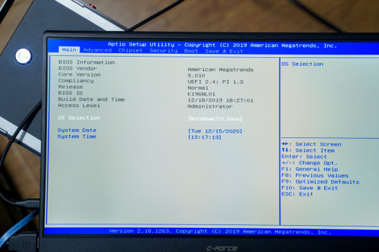 这个BIOS是2019年的固件,看来这个矿渣确实很新,我建议进入BIOS后,按一下F9,重置一下设置: