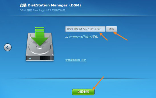 23、然后点击浏览,找到我们下载的pat文件,这个就是固件,200多MB的那个,完成后点击立即安装: