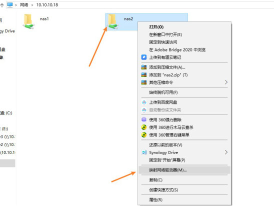 5、点击一个文件夹,右键,映射网络驱动器,随便选择一个盘符,点击确定: