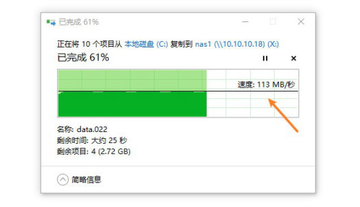 3、然后在拷贝速度上,J1900 可以完美跑满千兆局域网的带宽!