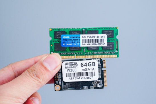 1、我将这个蜜獾超存的8GB内存条和64G的固态硬盘拆了下来,准备给接下来折腾的一款软路由使用!