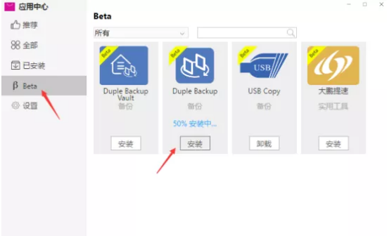 1.下载Duple Backup;在TOS-应用中心-Beta下载并安装Duple Backup。