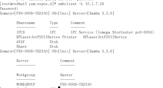 Smbclient –L 主机名(或主机ip地址) ,看到共享服务器中德共享目录