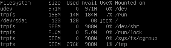 然后用命令:df –h看了一下,居然磁盘空间100%了。