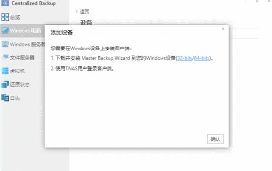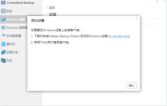 2.然后你在桌面打开Centralized Backup,以Windows电脑为例,选择设备;