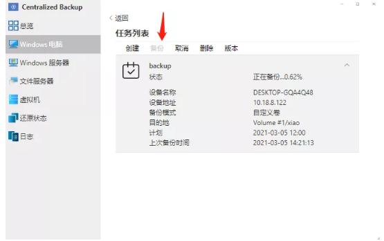 Centralized Backup(中央备份)是一款由铁威马自行开发的企业备份应用程序,通过它,你可以集中备份各种PC、服务器、虚拟机等卷数据,还可以快速进行还原备份。