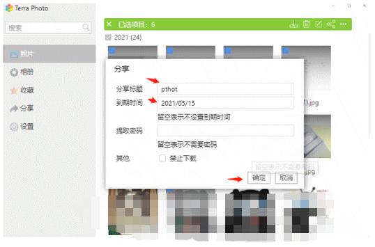 Terra Photo是一个智能照片管理应用程序。当你把照片存储进NAS后,可以进入Terra Photo,选择需要分享照片,点击分享。