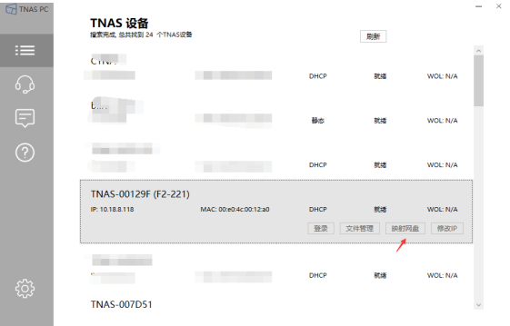 6.还可以使用TNAS PC映射网络驱动器,运行TNAS PC,选中你的TNAS设备,点击映射网盘;