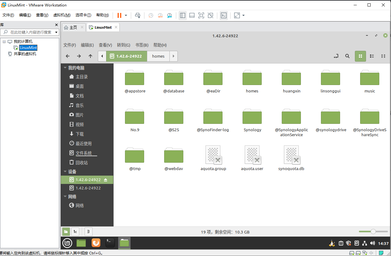 05.启动虚拟机,然后就可以像平时一样打开对应的盘符操作文件了,也可以直接安装某盘的linux版本网盘直接操作上传备份等。
