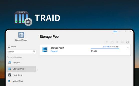 我们推荐大家可以选择铁威马独家开发的弹性磁盘阵列管理工具–TRAID,可以自动组合磁盘空间、硬盘故障冗余保护、自动扩容,相比起传统的RAID模式,不需要用户手动配置,直接根据硬盘属性自动配置,为用户提供优化、灵活、弹性的磁盘阵列管理方式,特别适合搞不清楚磁盘阵列配置小白用户。