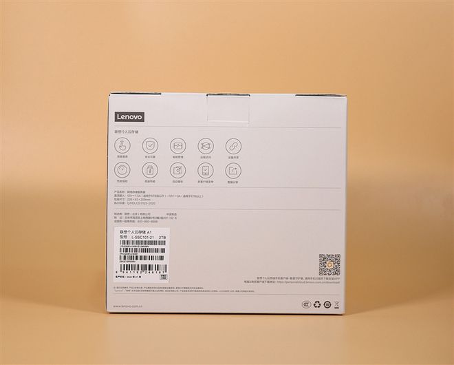 联想个人云存储A1的包装十分简洁,正面有标志性的联想LOGO和产品照片。