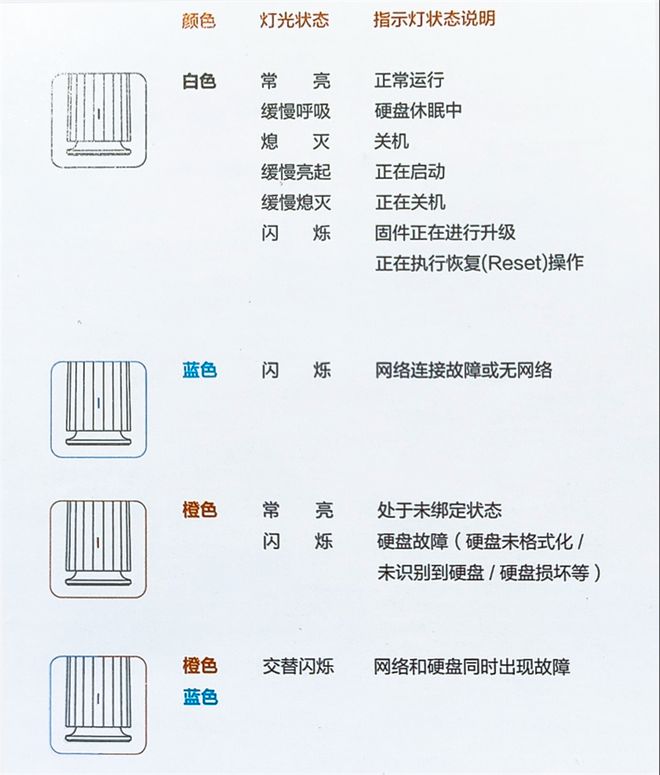 前方的指示灯,根据灯光的颜色和状态,可以判断联想个人云存储A1当前的工作状态如何。