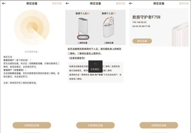 扫一扫功能,可以用于绑定新设备,比如我们再绑定一台联想个人云。