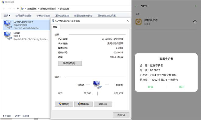 在使用时,无论是PC还是手机,都会生成一条专用的SDVN虚拟安全网来保证传输数据的安全。