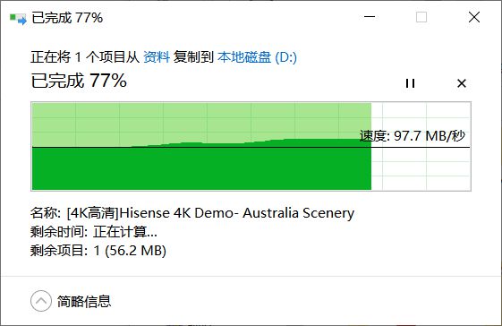 四、传输体验:峰值速度可达百兆字节每秒 支持4K流媒体播放