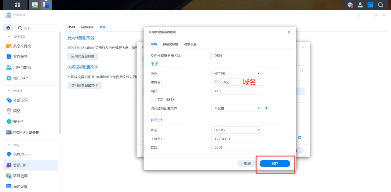 本文介绍443端口代理映射DSM的5001。如果是80端口,则映射DSM的5000端口,类同: