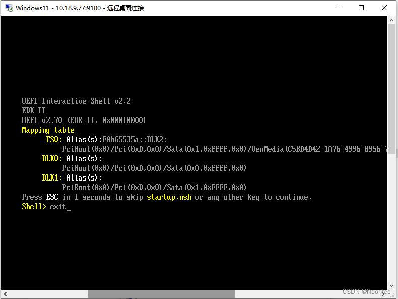 6.控制虚拟机桌面后,输入“exit”,然后按“Enter”键退出 EFI Shell 环境;